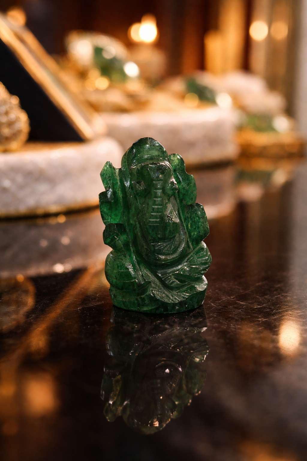 Invoke the blessings of Ganesha, the remover of obstacles and the symbol of wisdom, with this beautifully carved Natural Aventurine Ganesh Idol from Navstone.