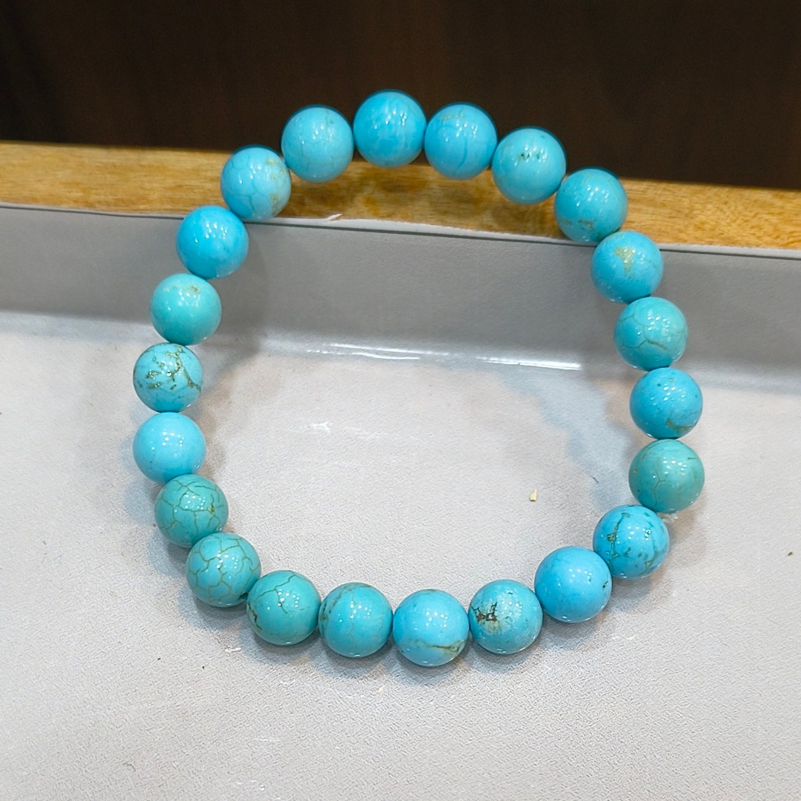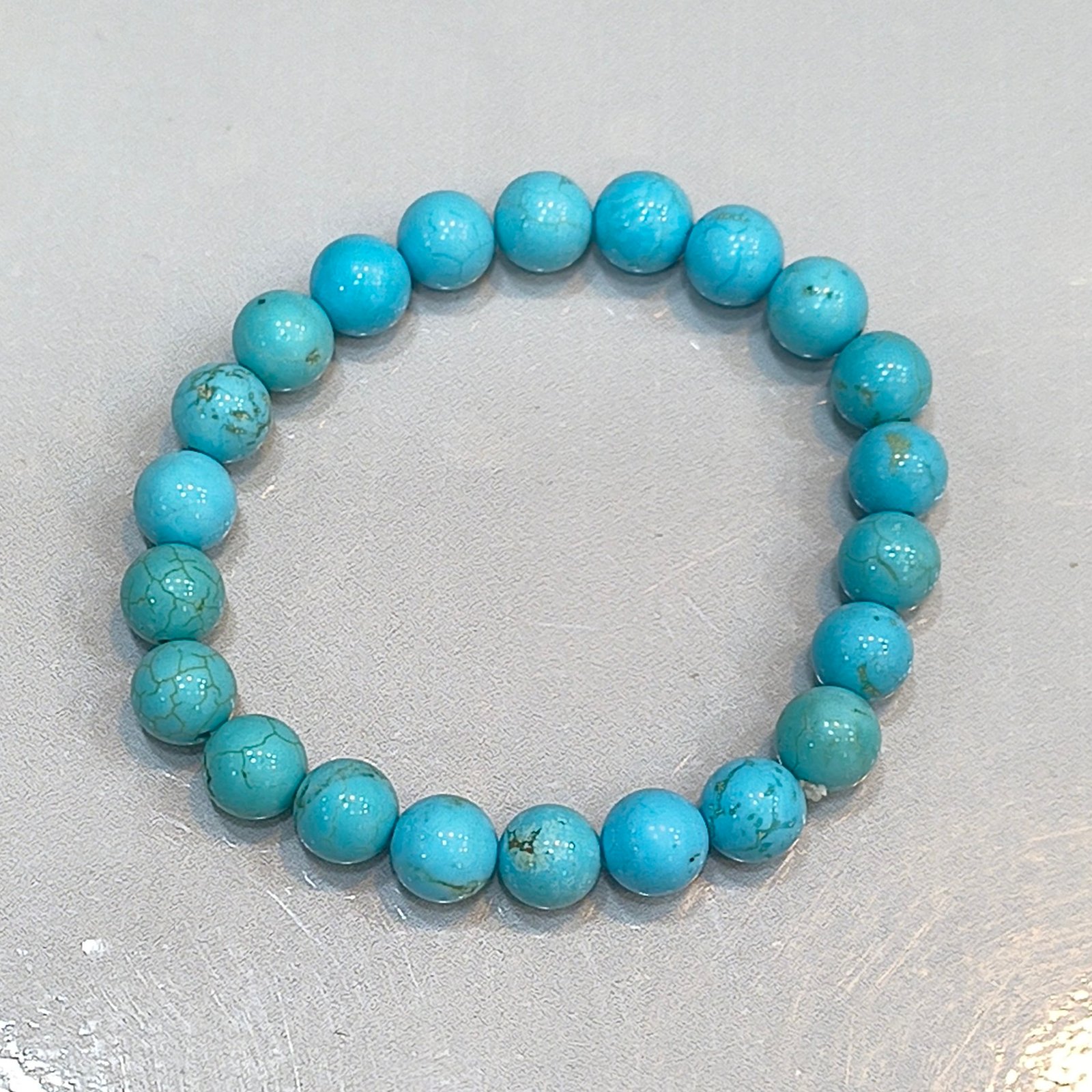 The Turquoise crystal bracelet is a symbol of serenity and protection, crafted with natural, high-quality Turquoise beads. This certified bracelet is designed to enhance emotional balance, communication, and spiritual awareness. The vibrant blue-green hues of this original Turquoise bracelet make it a timeless piece for both style and holistic well-being.